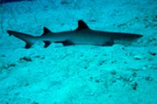 Žralok černoploutvý • 13.02.2011 • Tifosi Častý návštěvník pláže na ostrově Biyadoo, Maledivy.